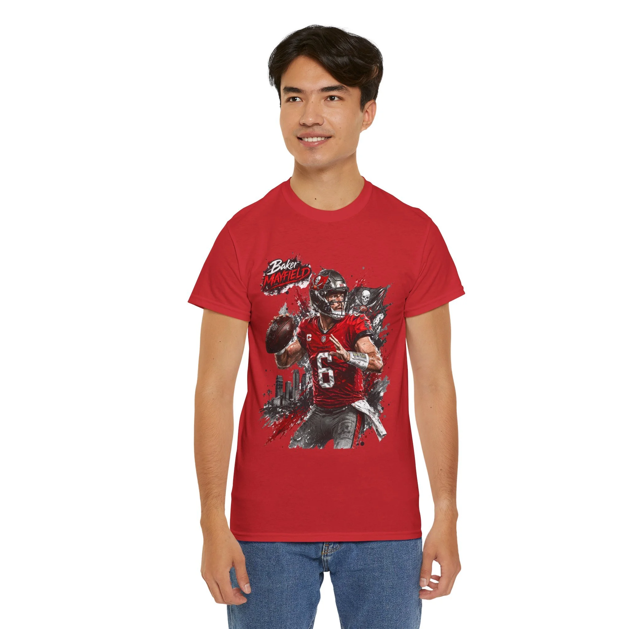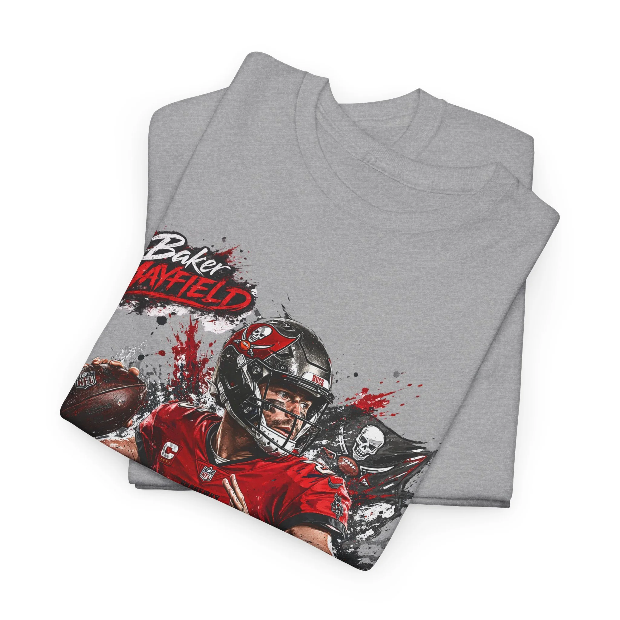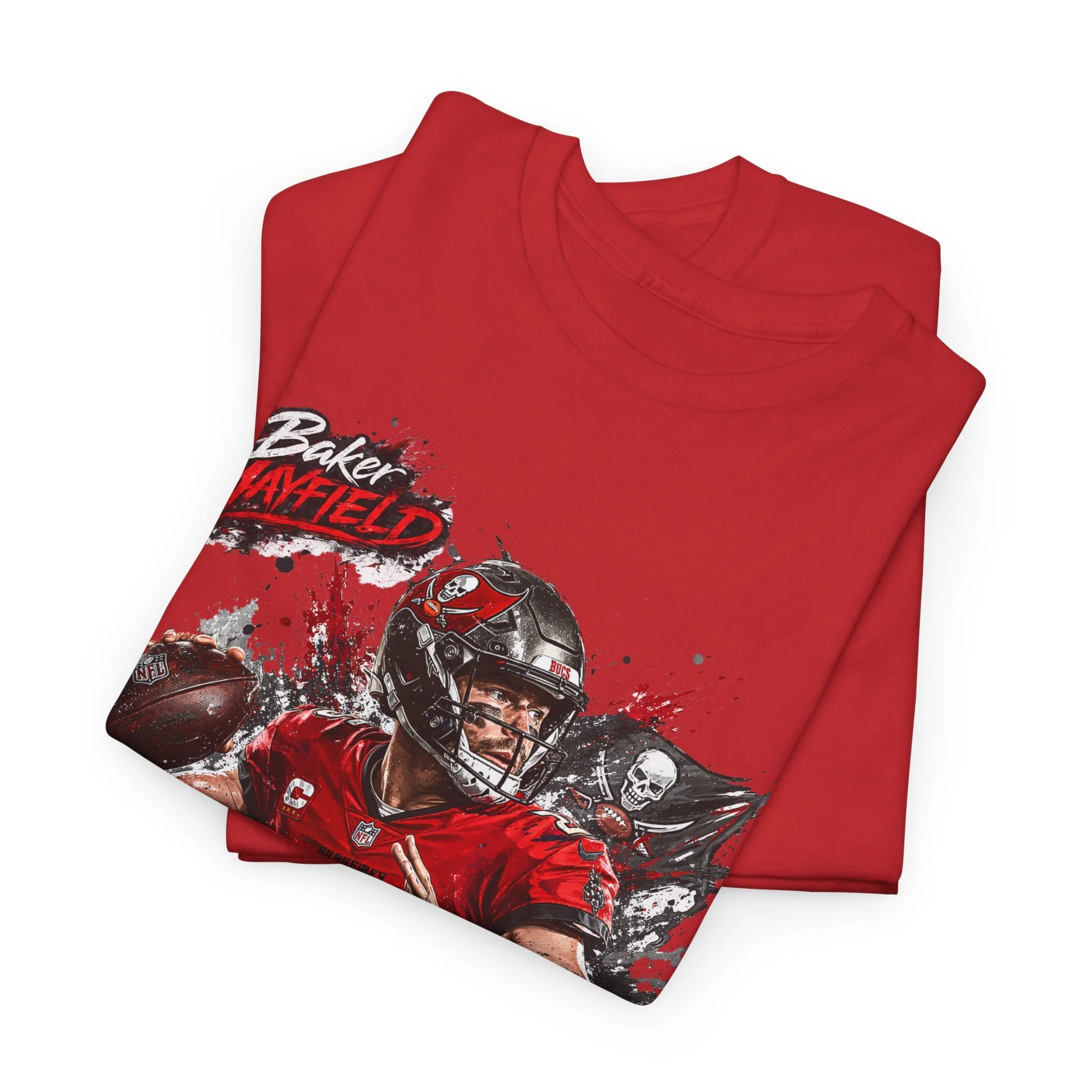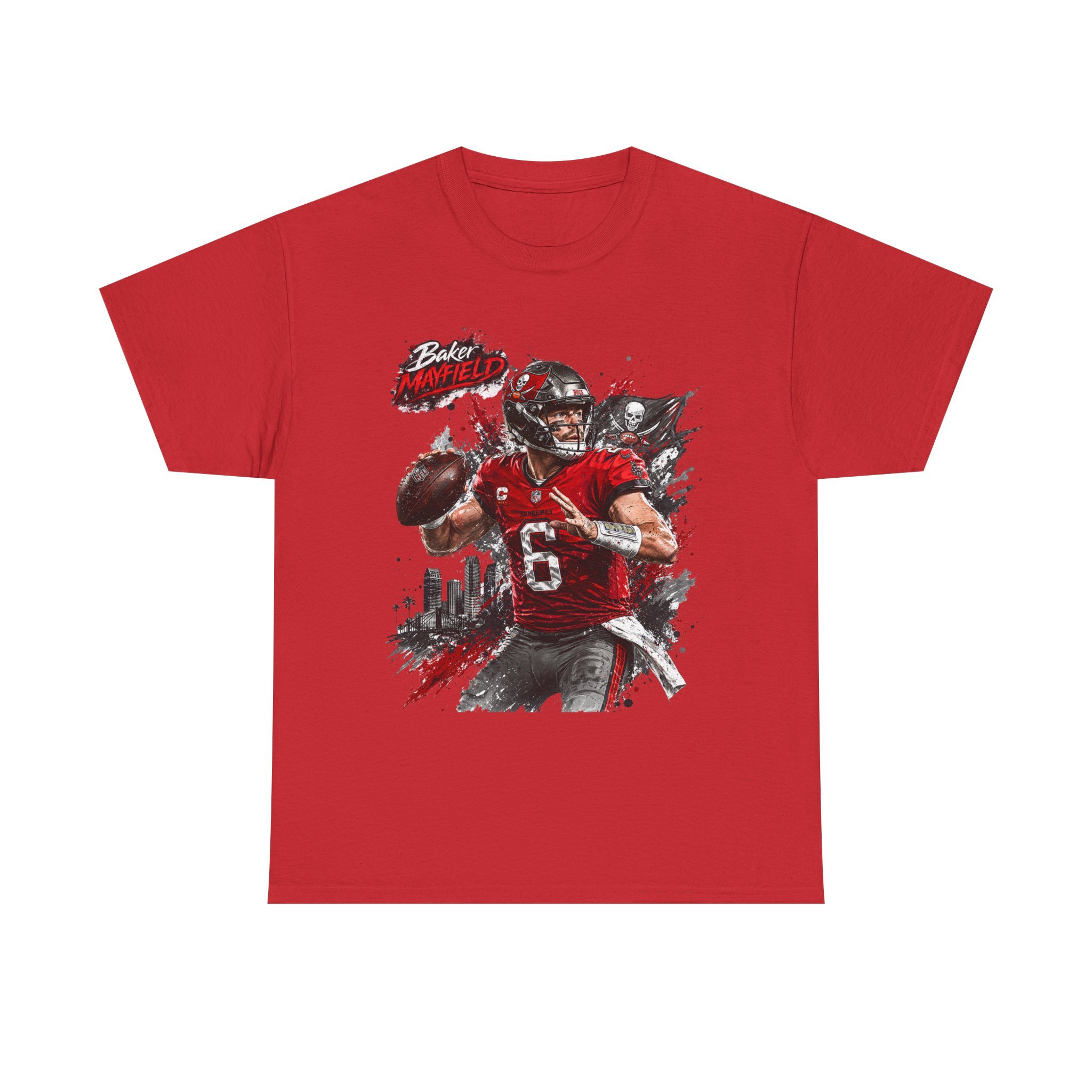 Baker Mayfield Quarterback Action Tee style | Red Black Grunge Sports Shirt