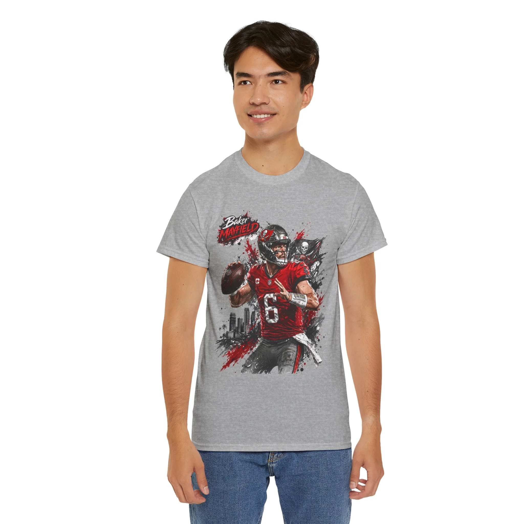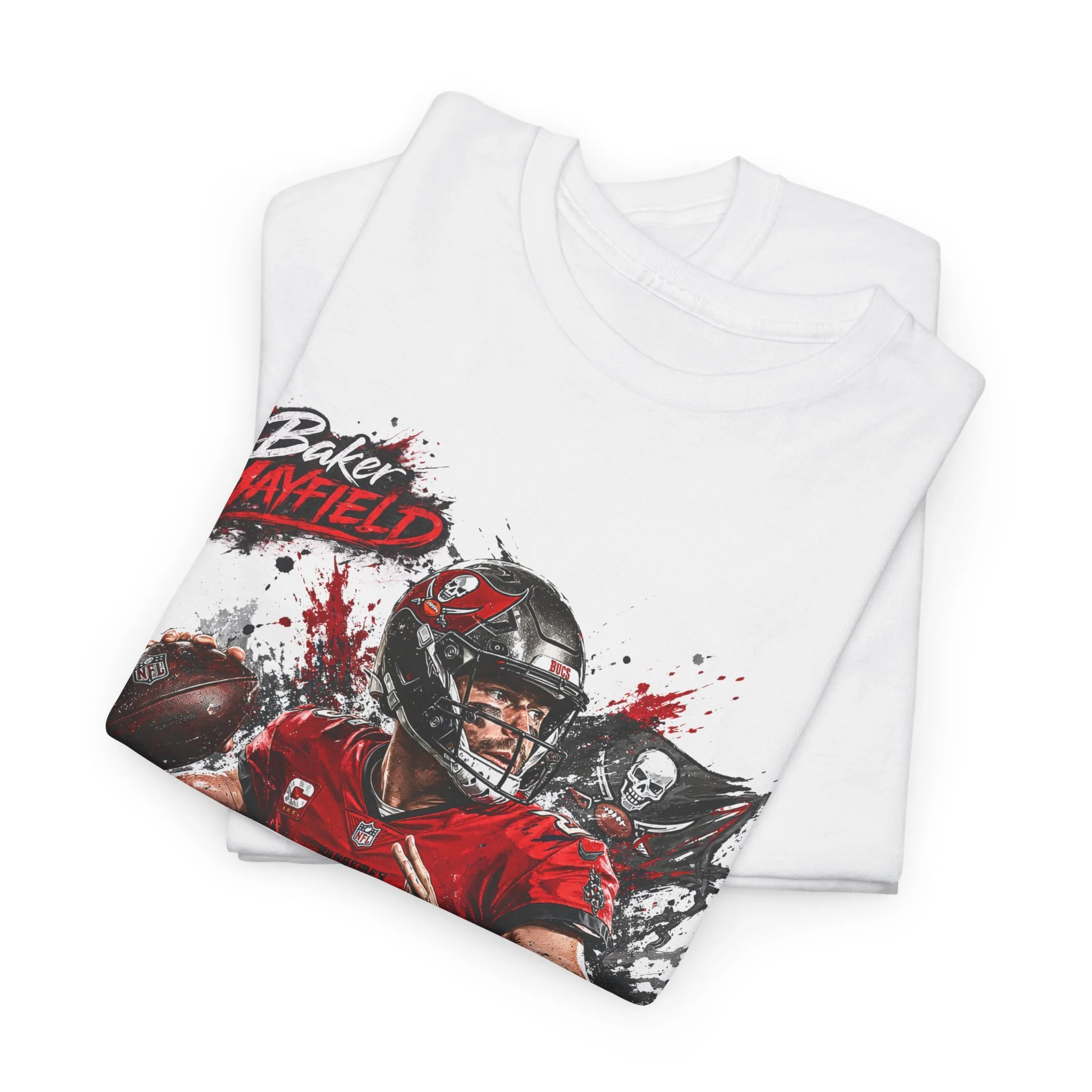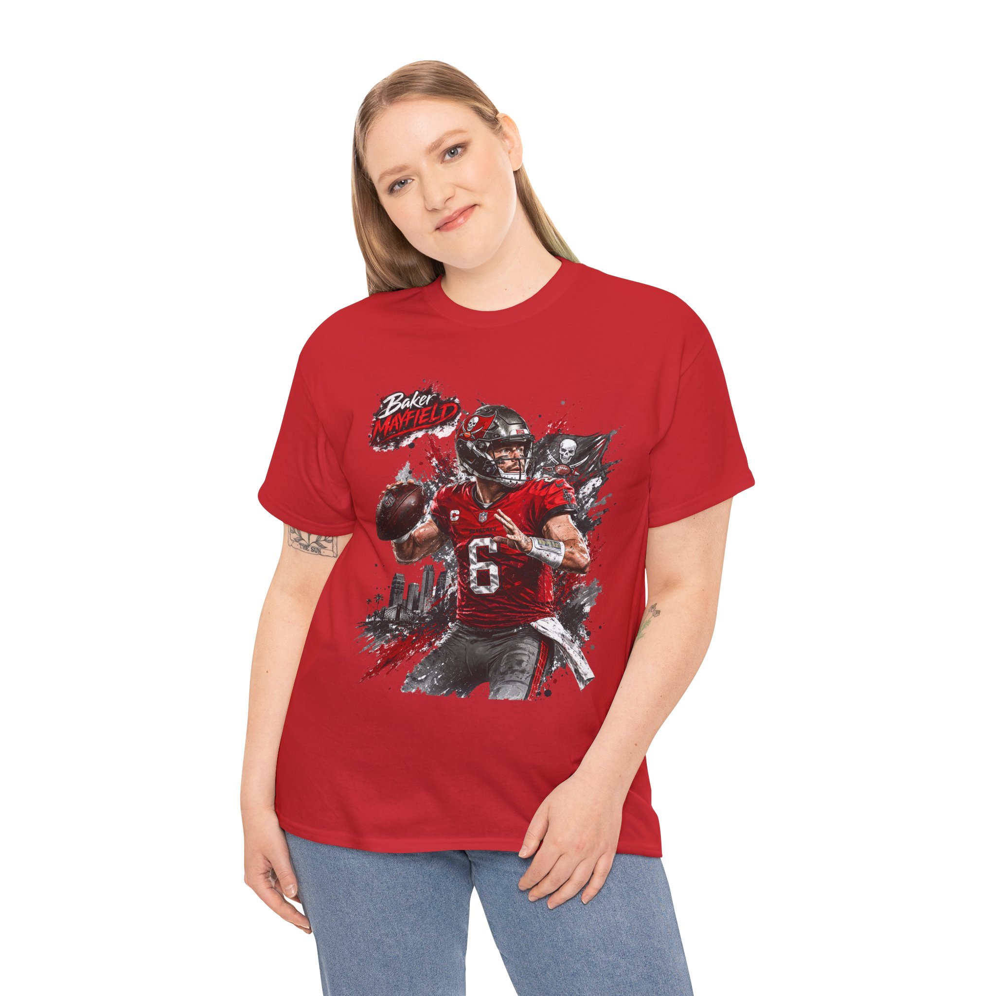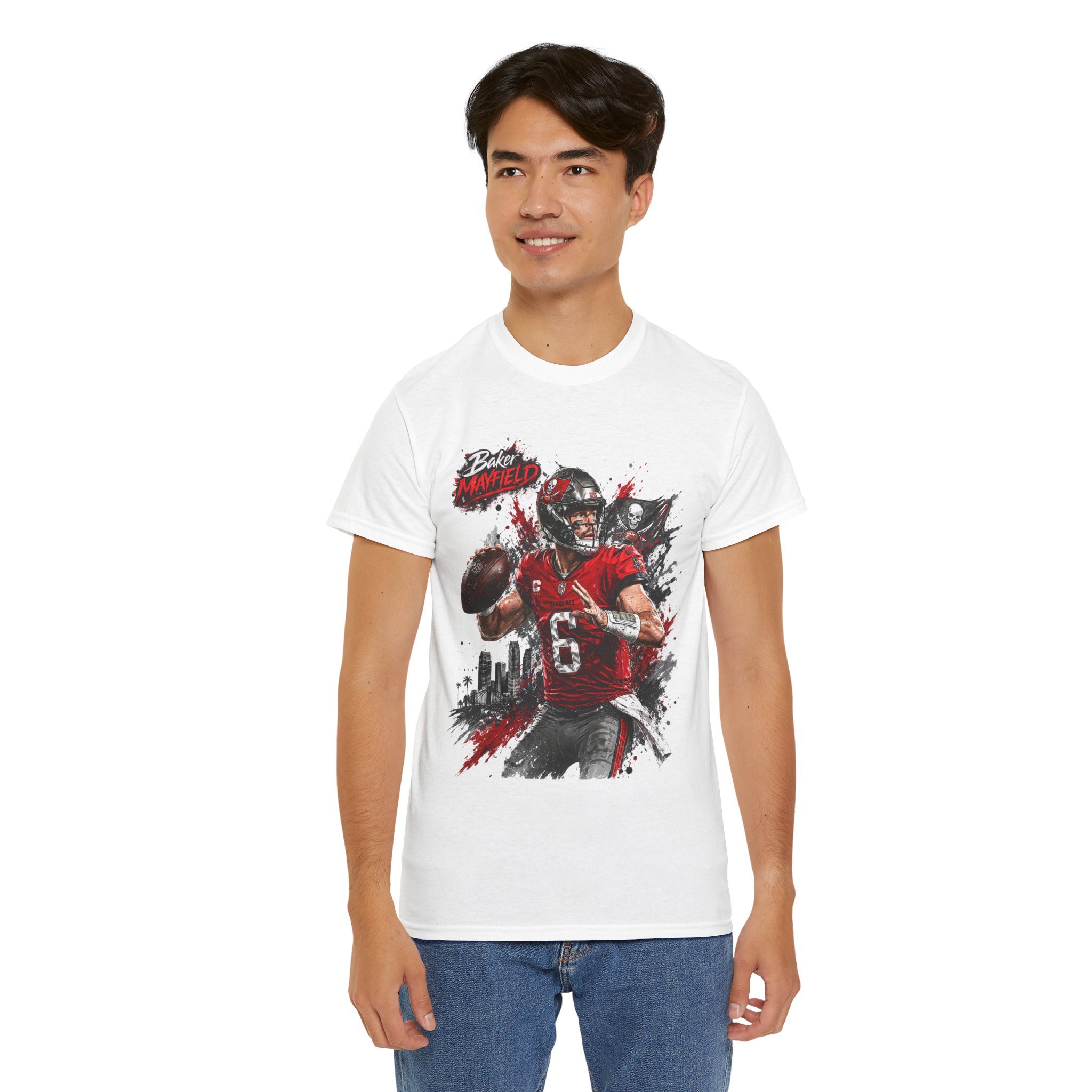 Baker Mayfield Quarterback Action Tee style | Red Black Grunge Sports Shirt