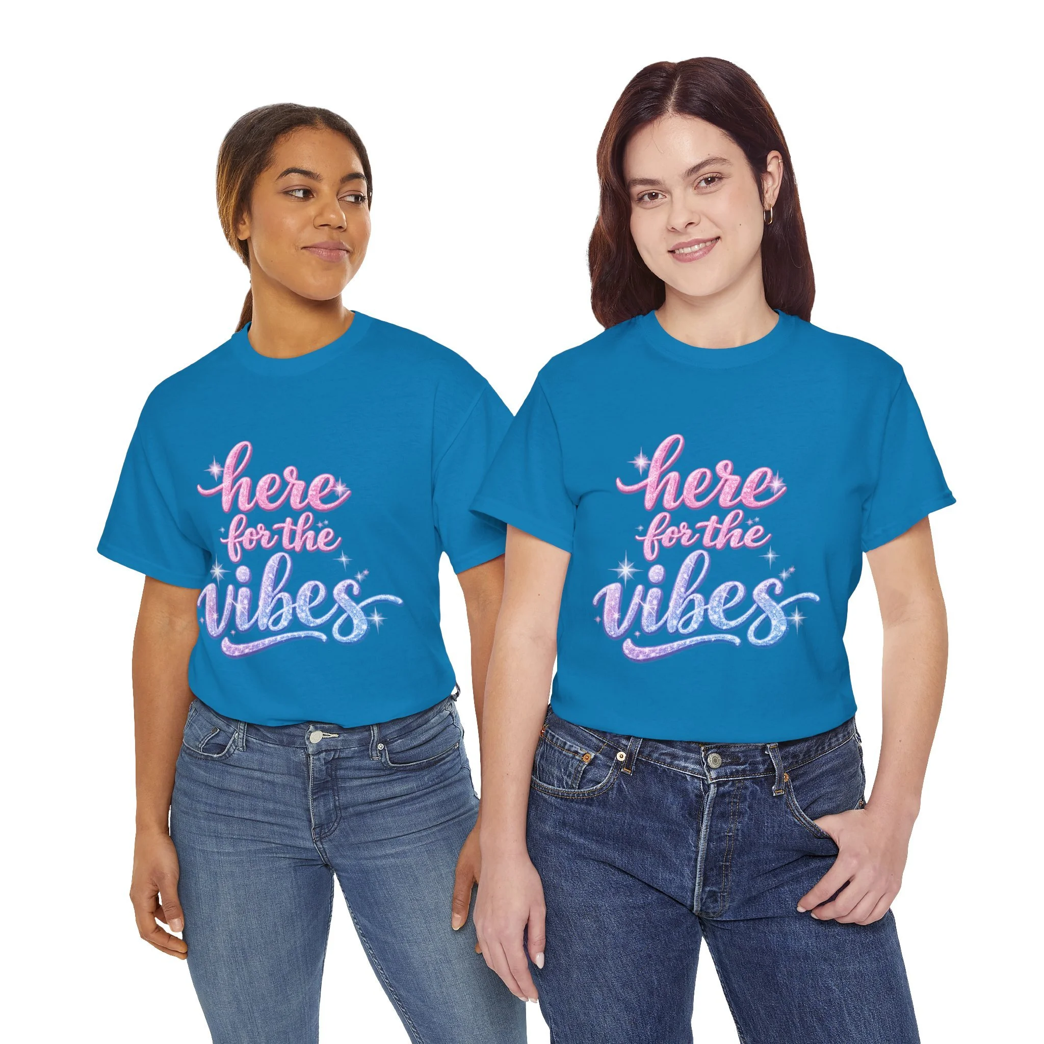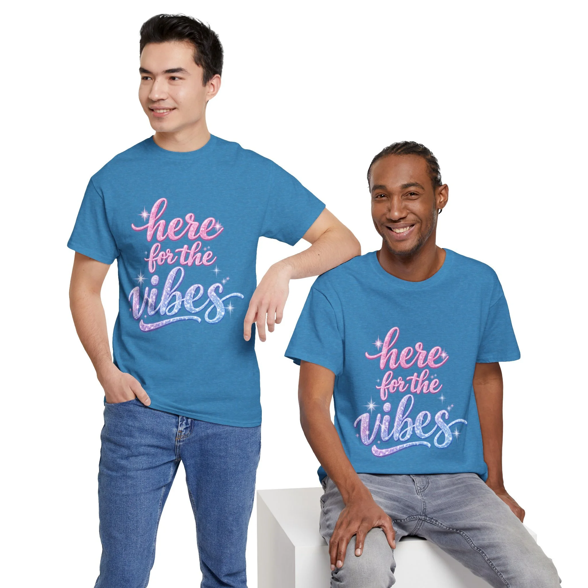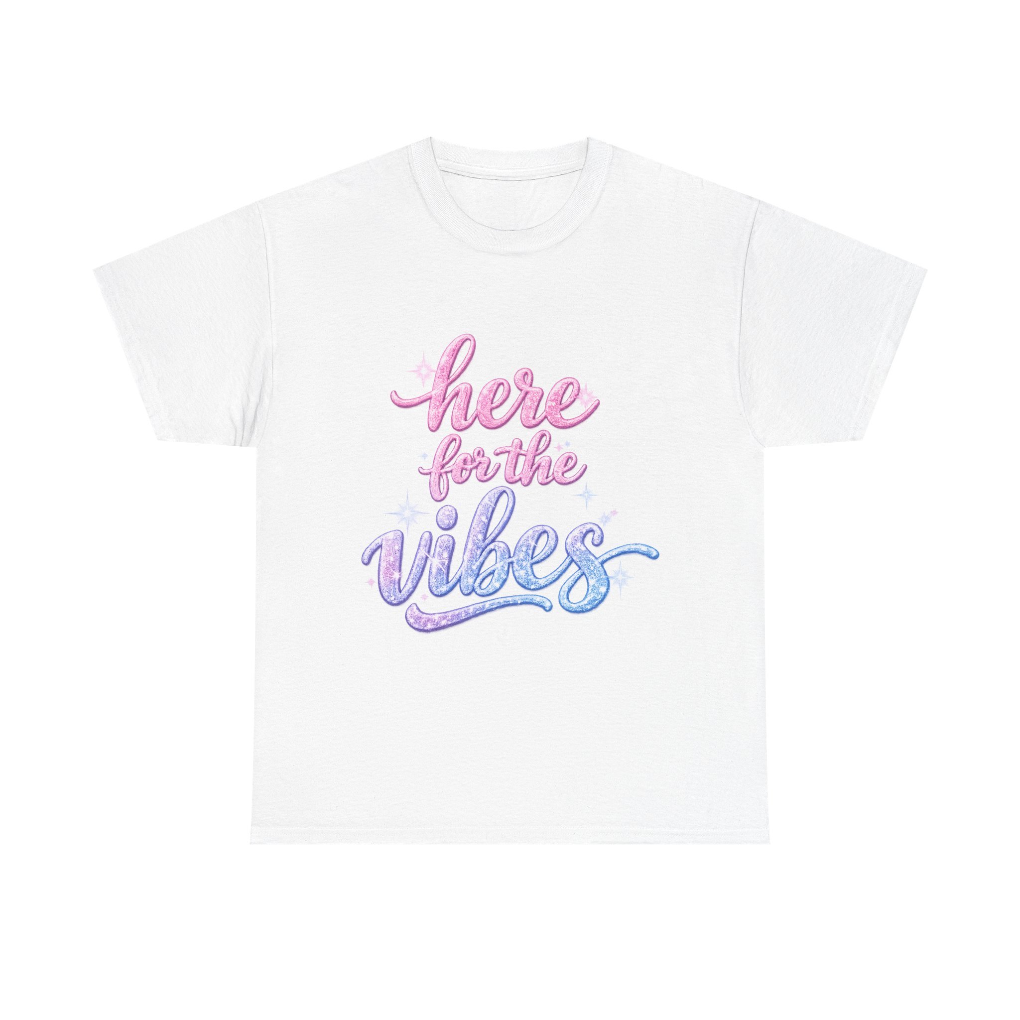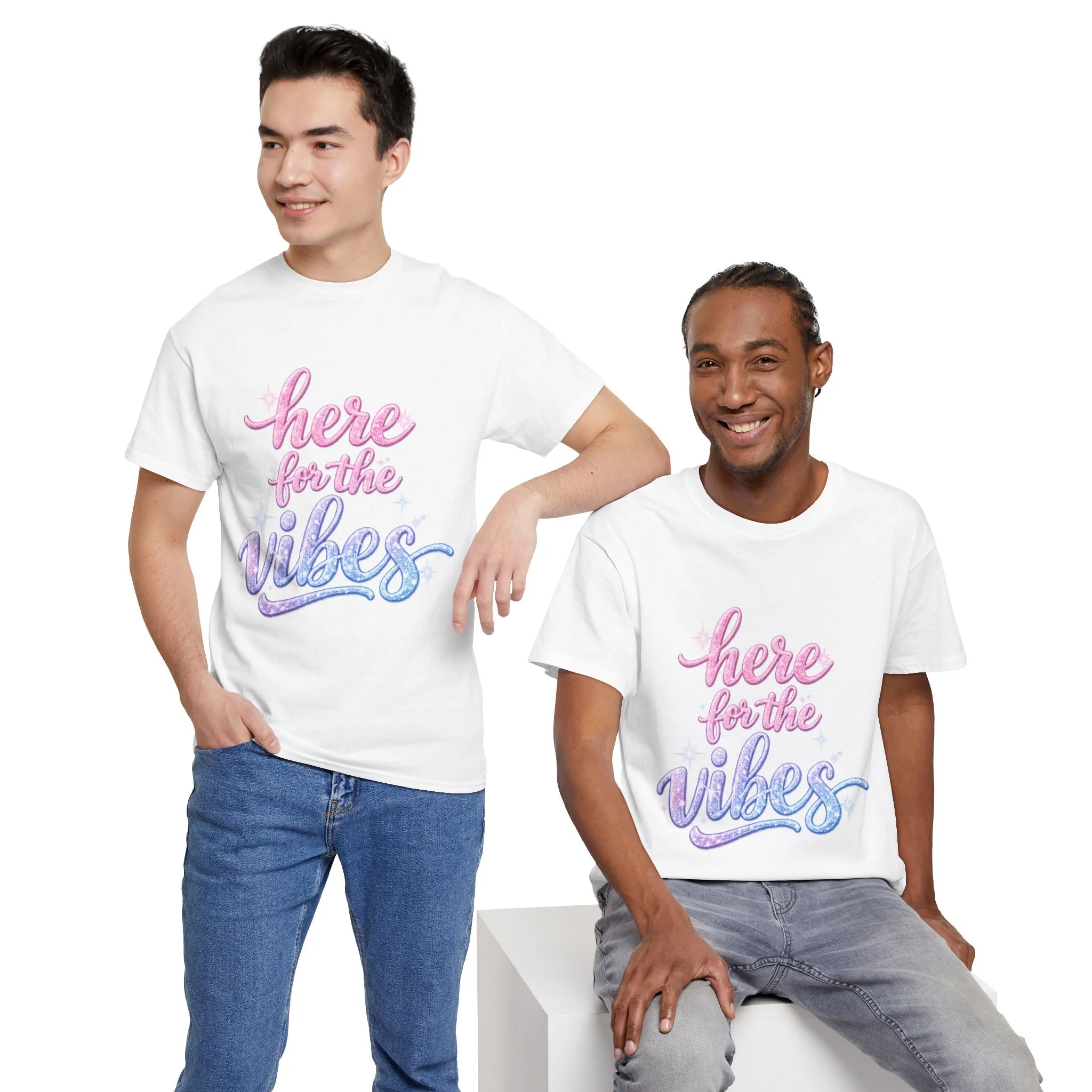 Here for the Vibes T-Shirt | Pastel Script Typography, Casual Tee