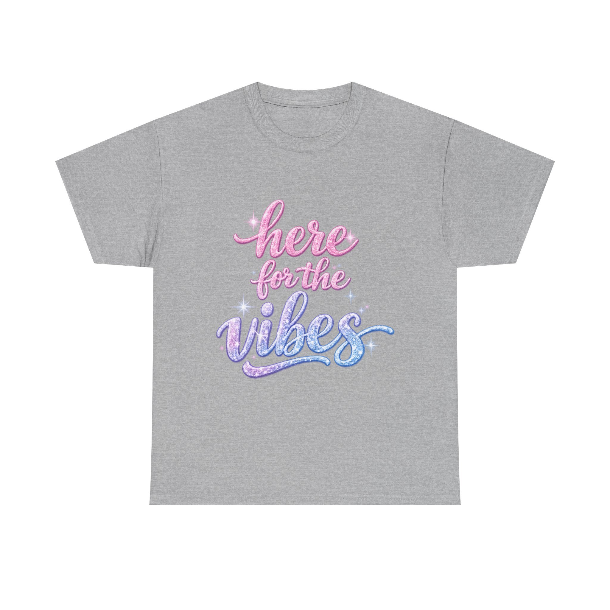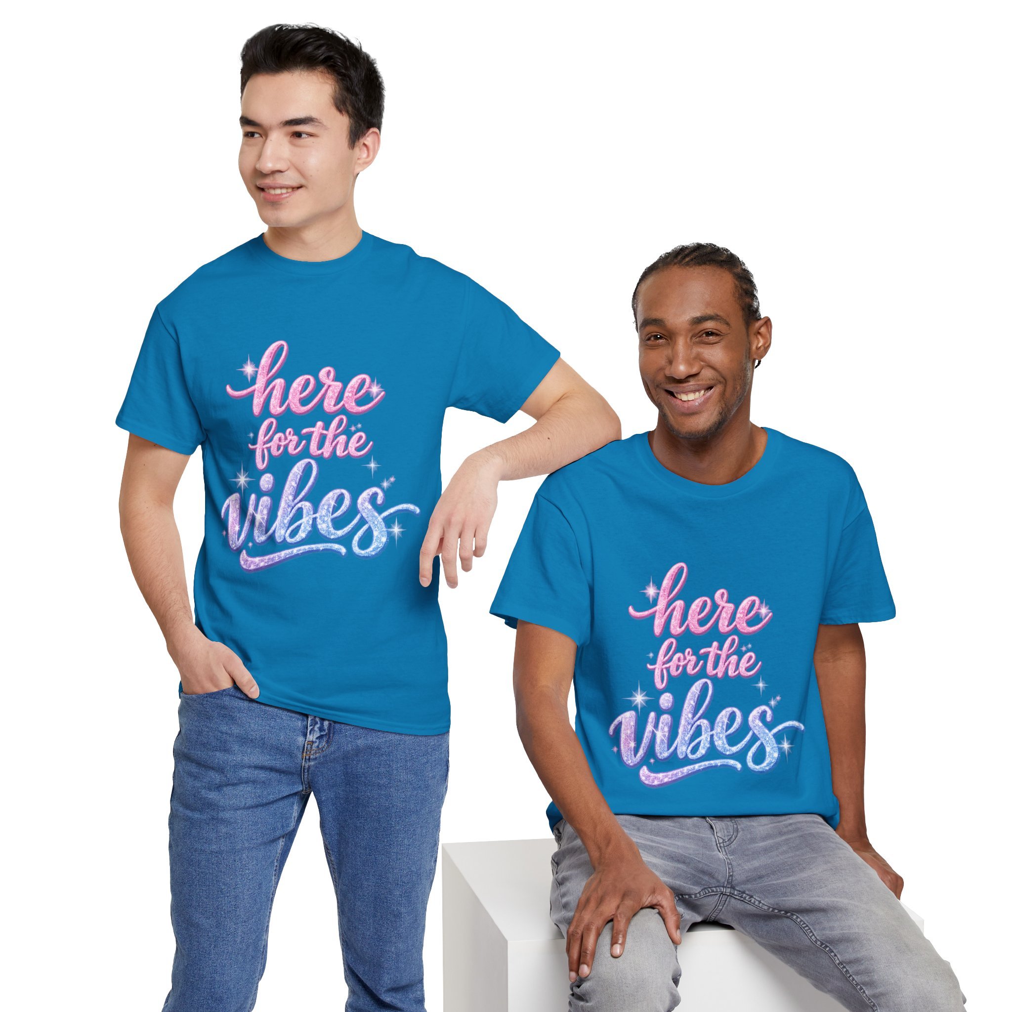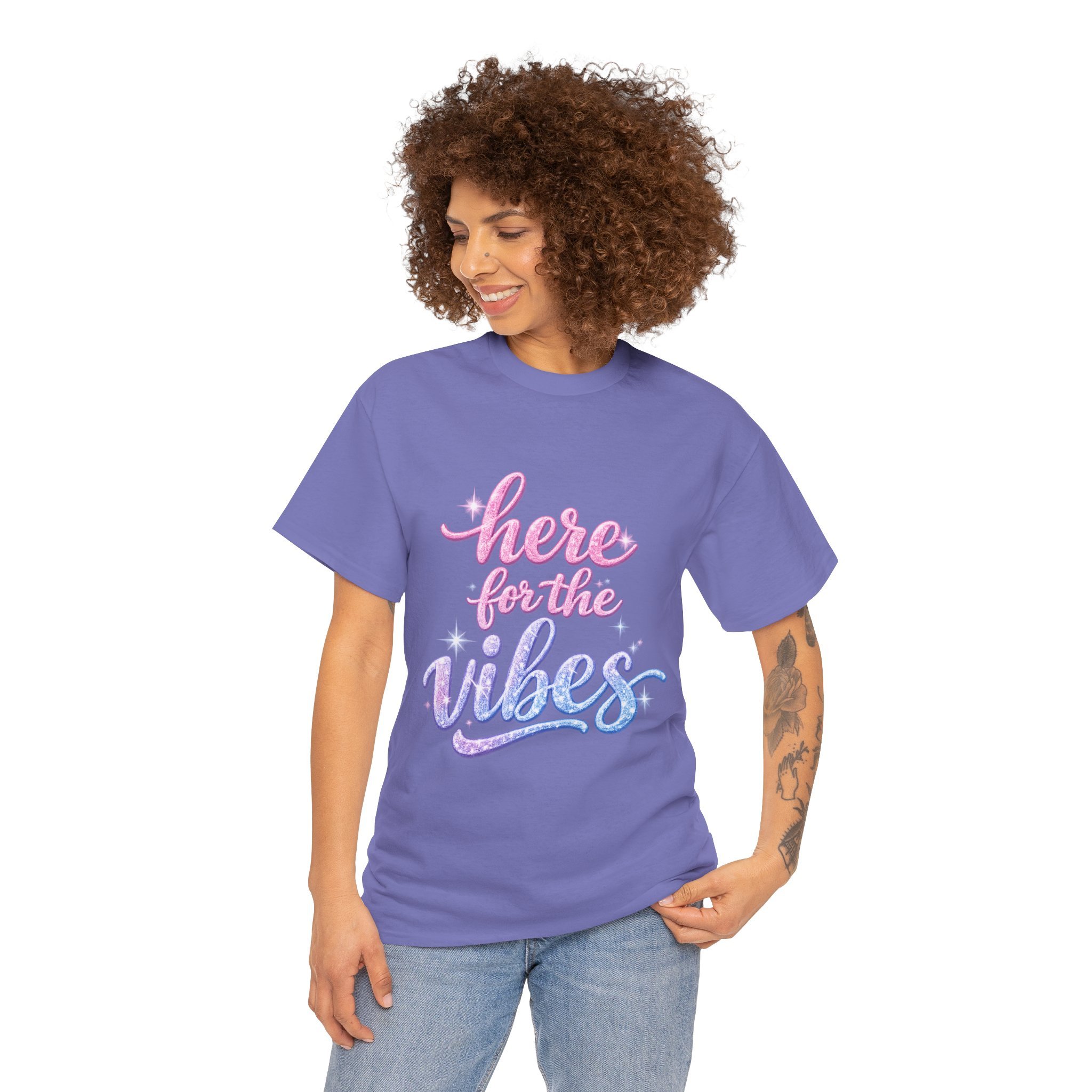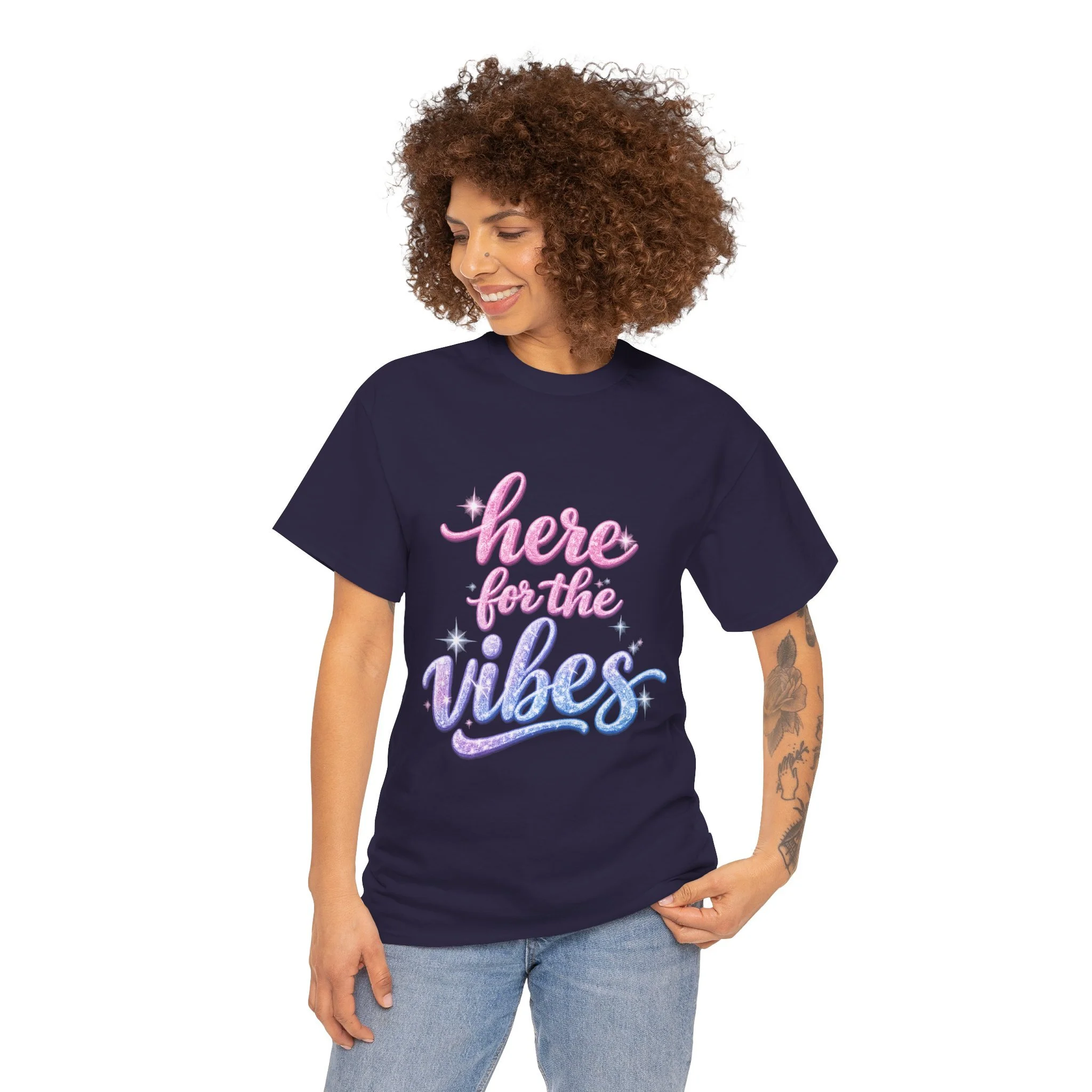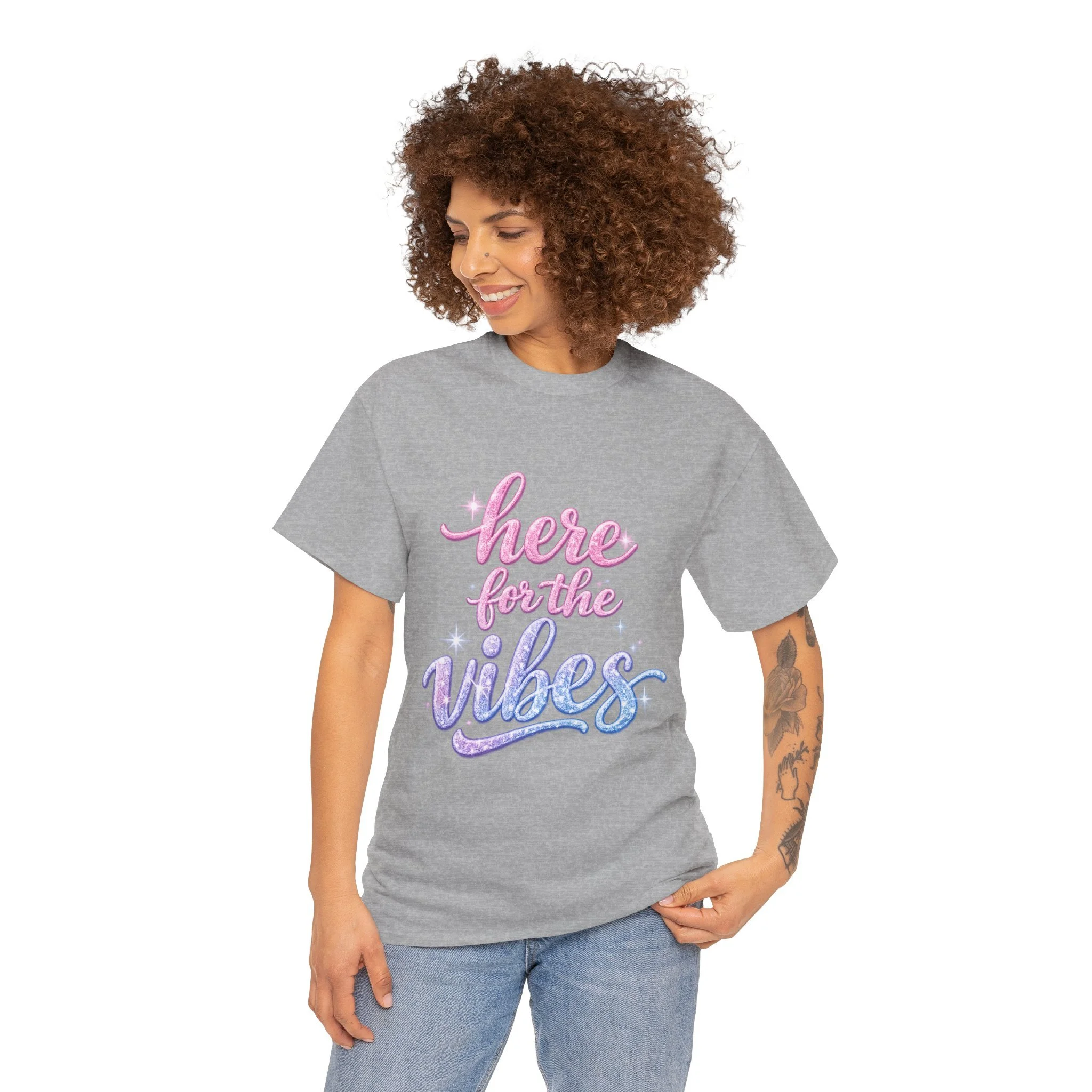 Here for the Vibes T-Shirt | Pastel Script Typography, Casual Tee