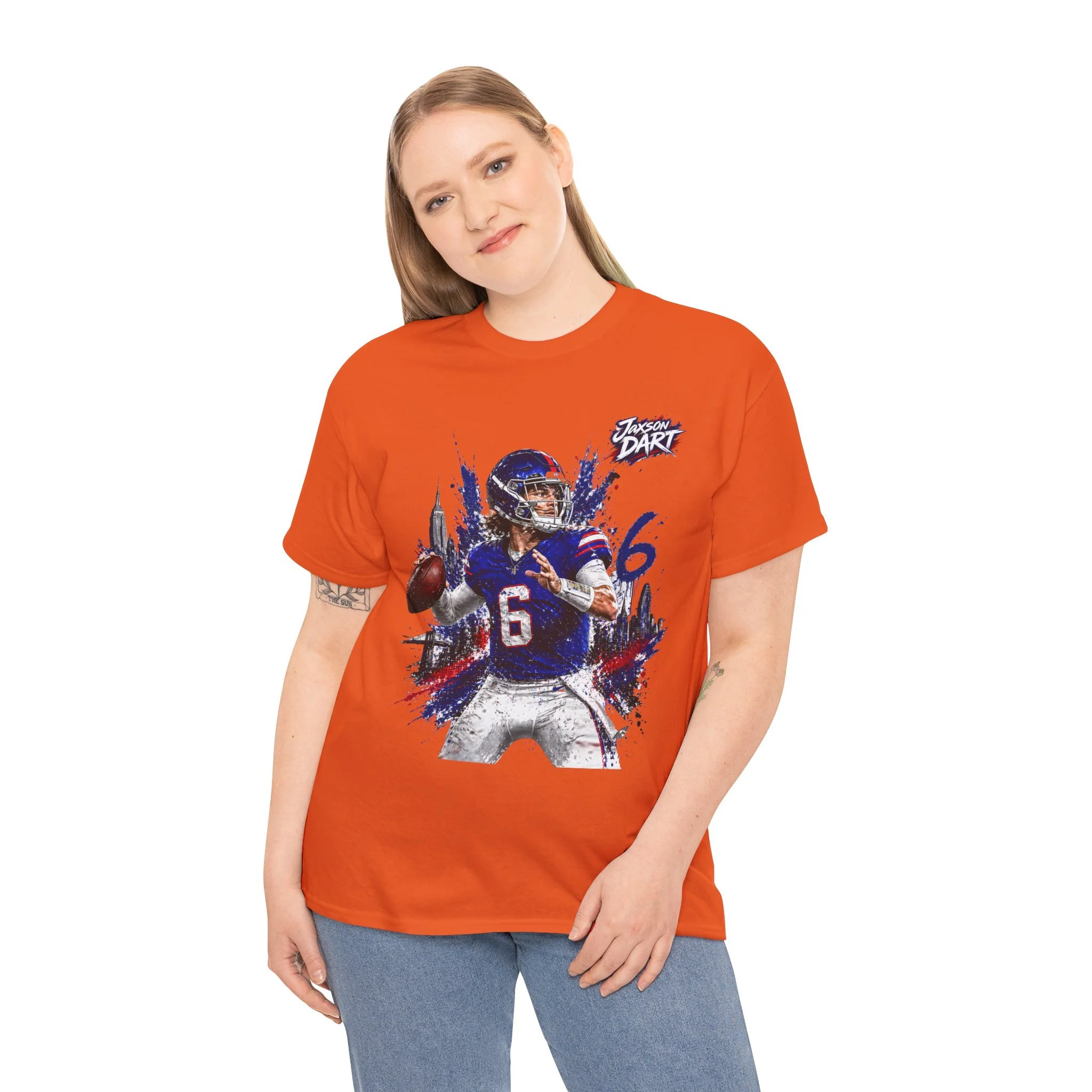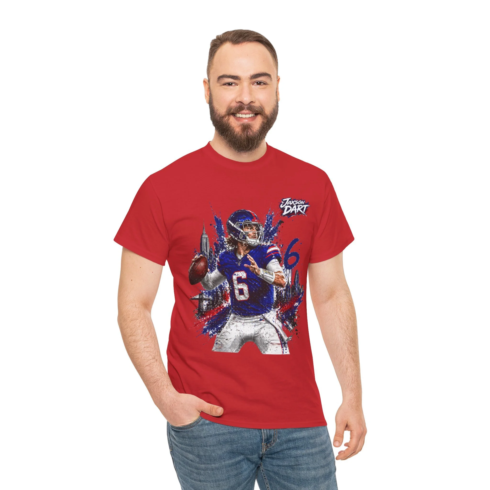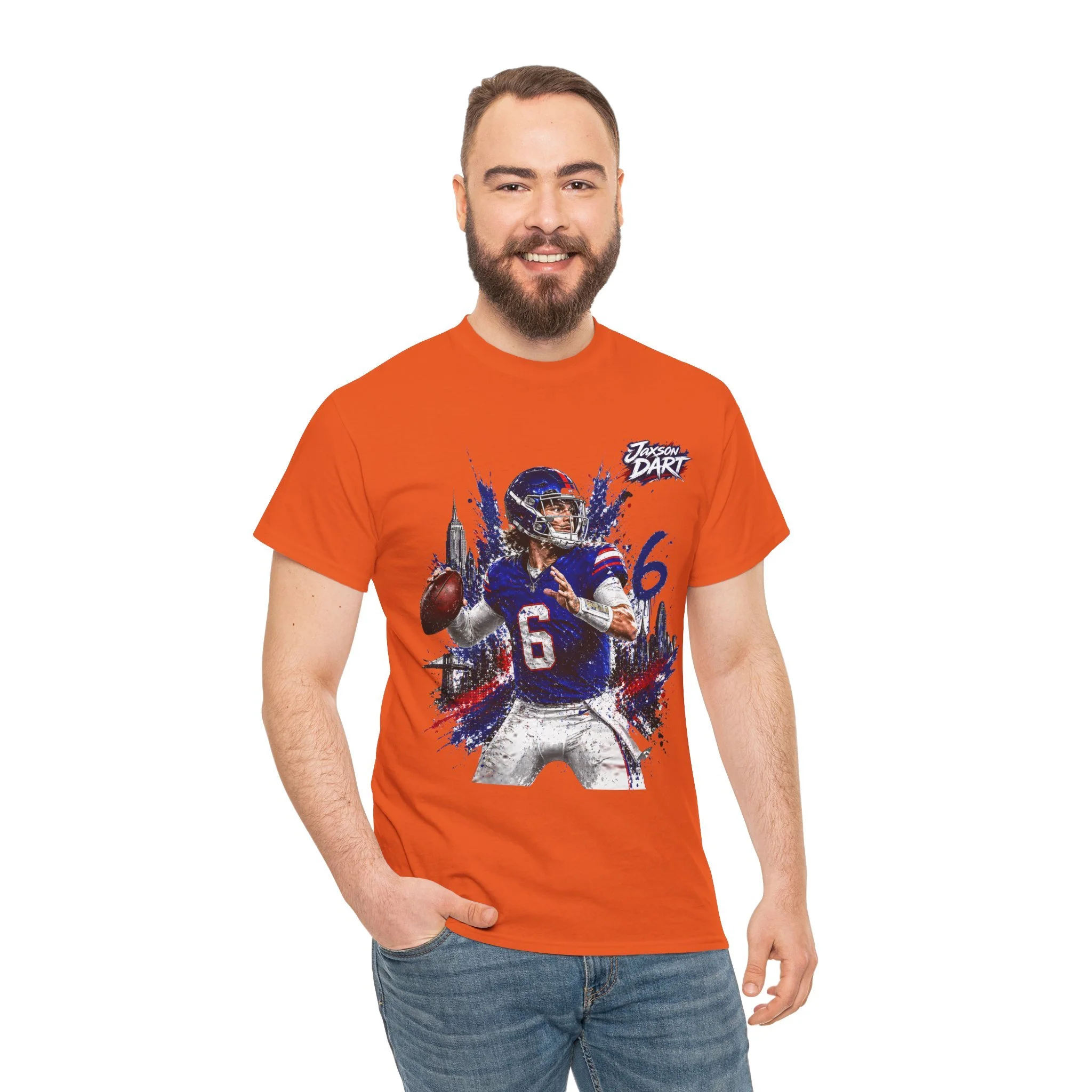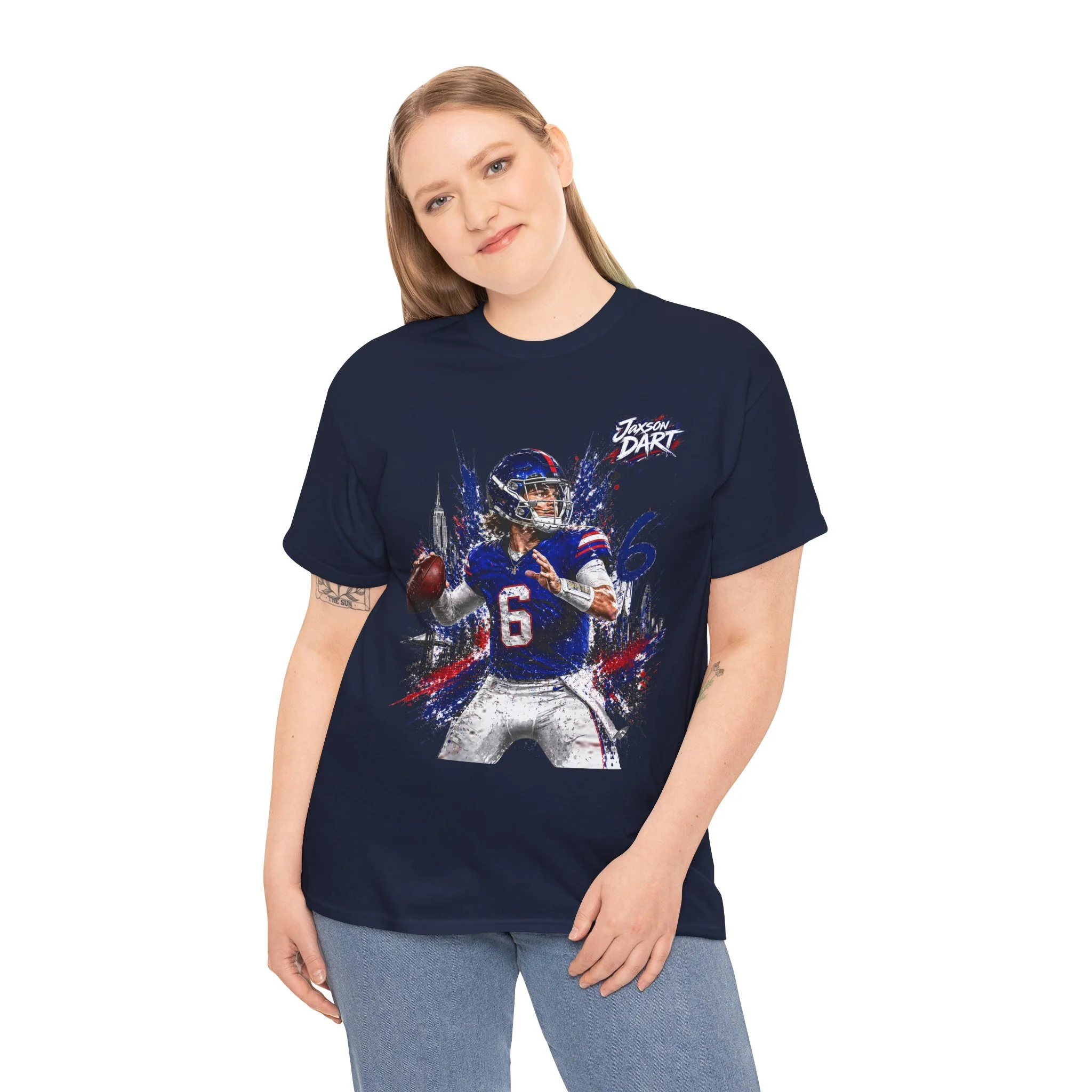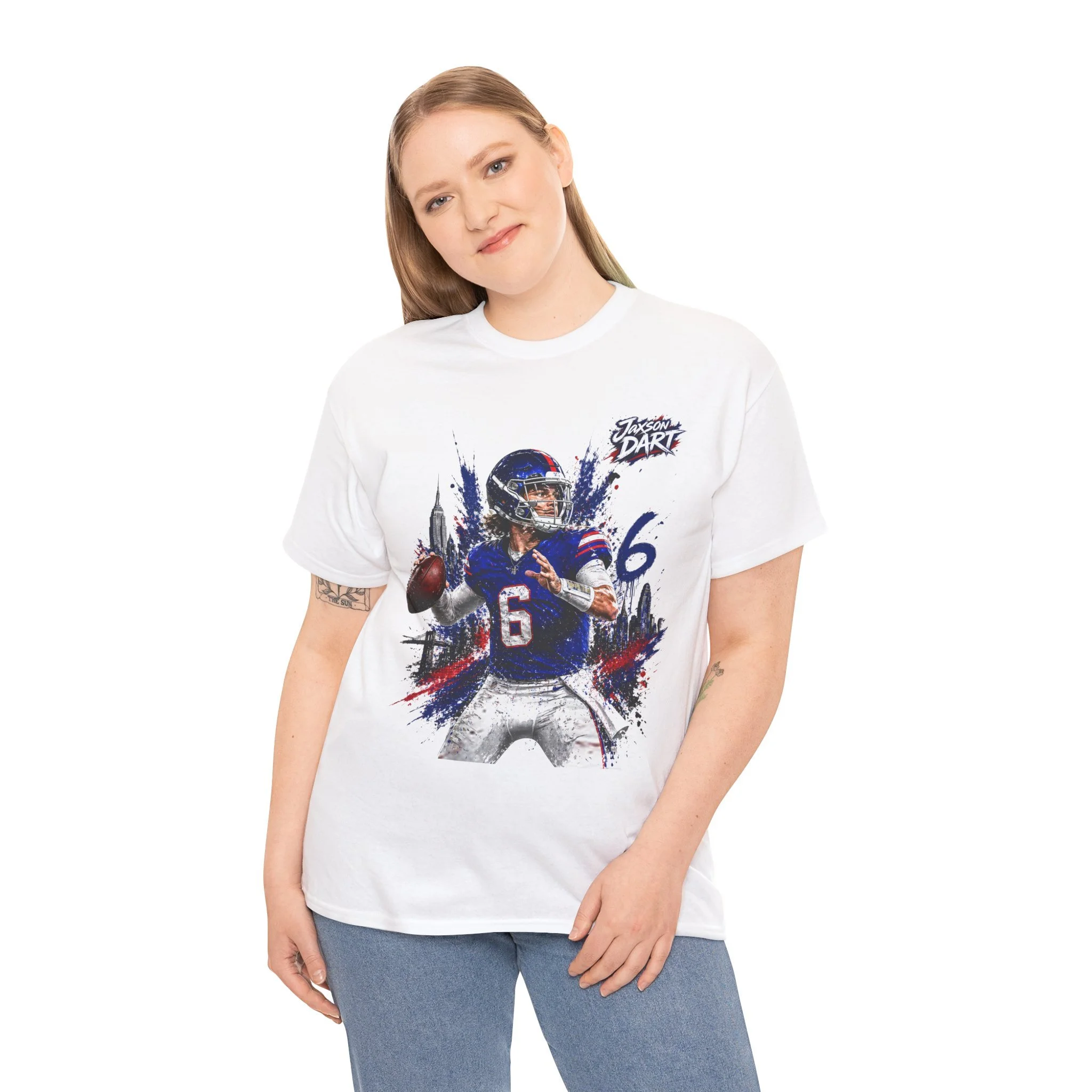 This classic cotton tee brings game-day energy into everyday wear. The bold, dynamic graphic of a quarterback in mid-throw uses vivid DTF and DTG printing for sharp detail and saturated color that stands out on the chest. Built on a roomy, classic-fit silhouette with a ribbed collar and tear-away label, the shirt feels familiar and comfortable from the first wear. Durable, ethically sourced cotton and reinforced shoulder tape mean this tee holds its shape through washes and seasons — great for cheering from the stands, hanging with your crew, or layering under a jacket on cooler evenings.